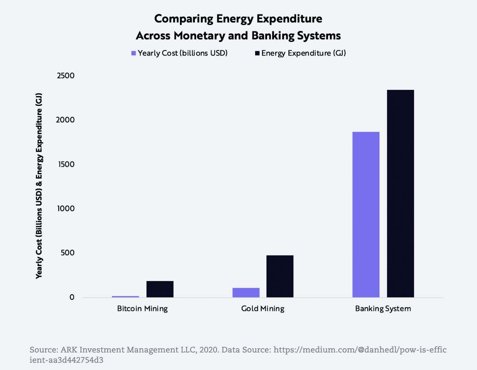 What you find in much of the "analysis" is always basic, unrelated comparisons such as "Bitcoin uses as much energy as American Airlines!" or some assumed hashrate data extrapolation far into the future that often completely misunderstands the mining protocol's function and conveniently ignores many variables. Or perhaps trying to compare Bitcoin to Visa, as if they are at all the same technology or use-case (although as the Lightning Network grows for payment channels, perhaps then we can compare that to Visa directly). Bitcoin is more than a payments network, it's more akin to Fedwire but for anyone's individual digital bank, with monetary policy and issuance attached. The primary use of Bitcoin's energy is to protect and encrypt over $1 trillion in digital assets in cyberspace (as of writing this), not just to process transactions. The critics of Bitcoin consistently misunderstand this.
