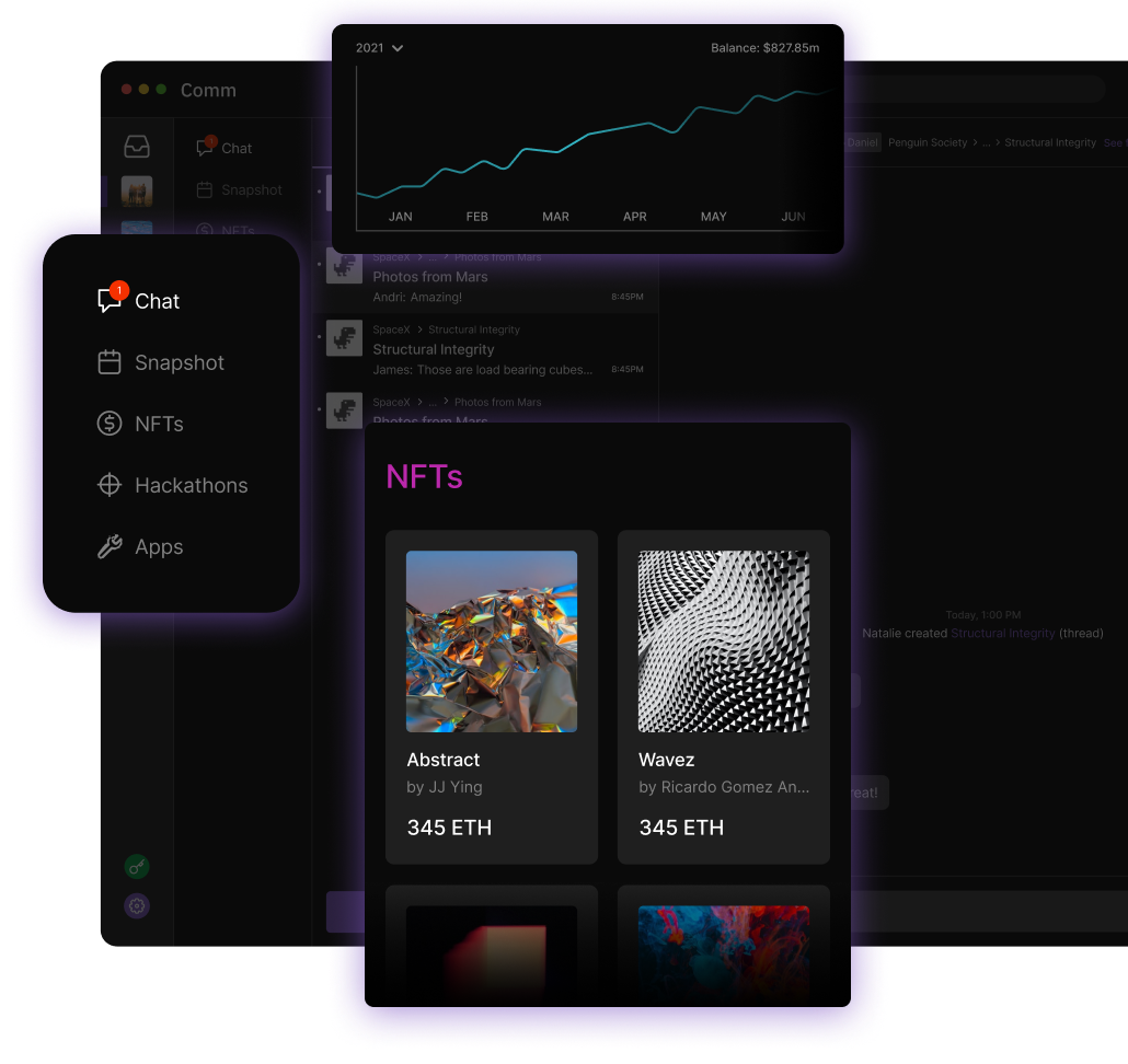 Comm is developing a top notch front-end application, with some of the best React developers we've seen–and will eventually serve as encryption infrastructure for the communication layer of web3.